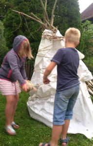 Zum Thema: „Turmbau zu Babel“ bauten wir gemeinsam eine Hütte.